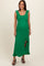 Green Textured Sleeveless Ruffle Slit Maternity Maxi Dress
