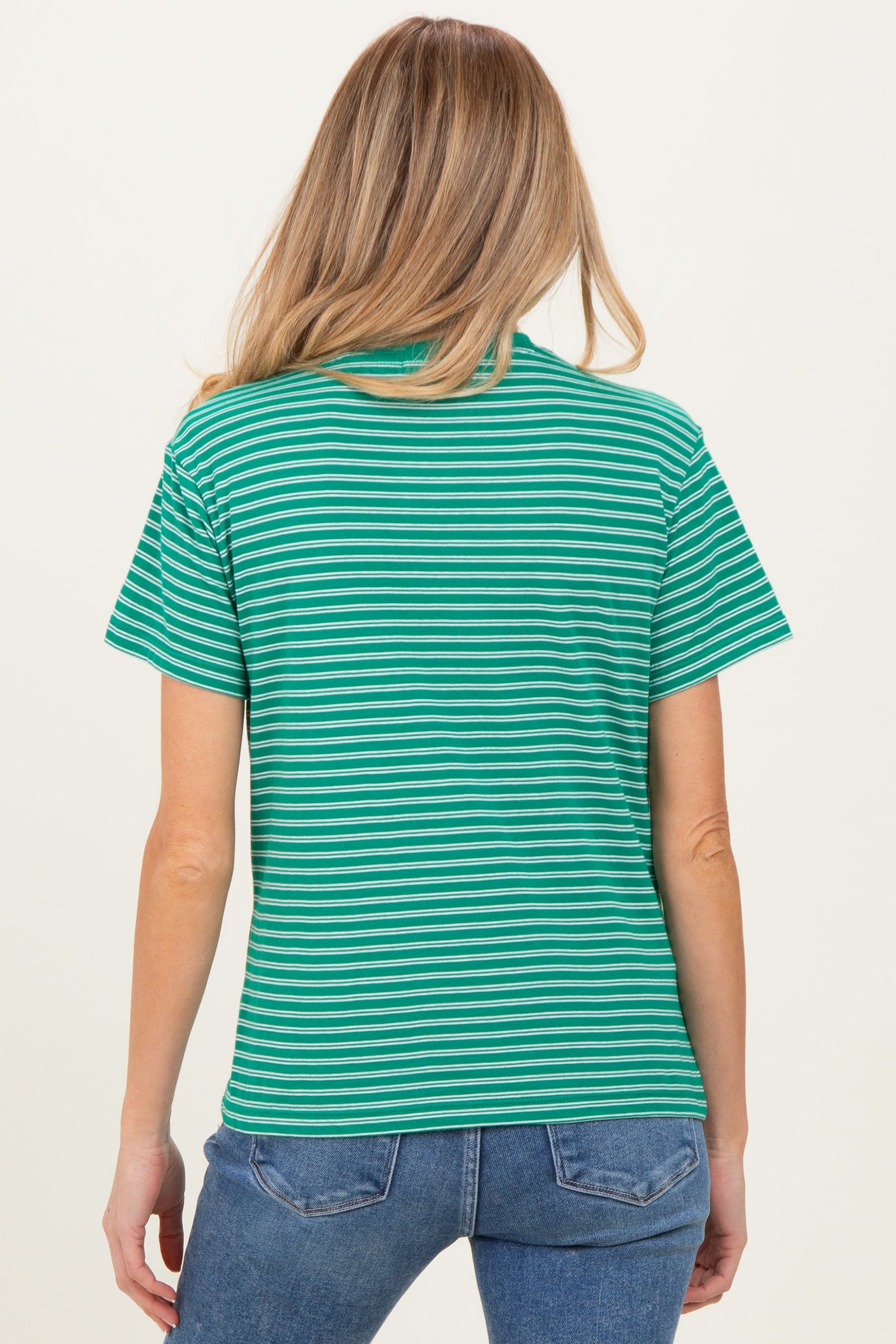 Green/White Short Sleeve Round Neck Stripe Maternity Tee