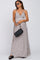 A printed sleeveless maternity maxi dress featuring side pockets and a wrap v-neckline.