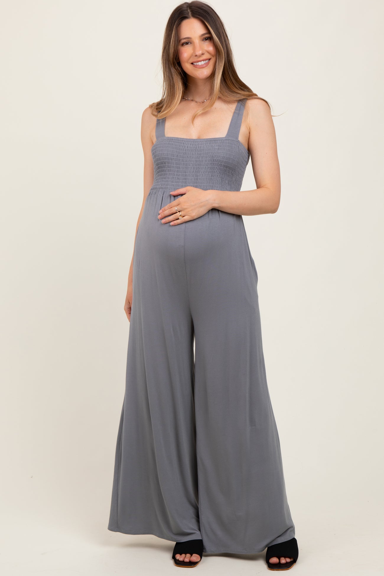 Grey Sleeveless Wide Leg Maternity Jumpsuit