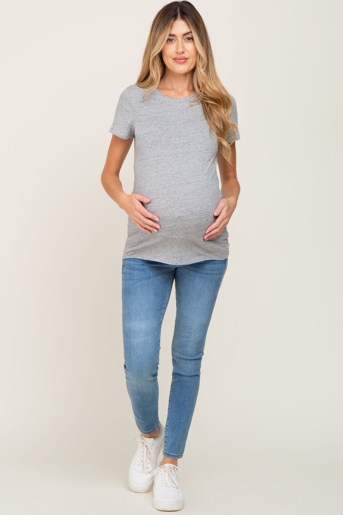 Heather Grey Basic Crew Neck Maternity Tee