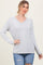 Heather Grey Basic V-Neck Long Sleeve Brushed Knit Top