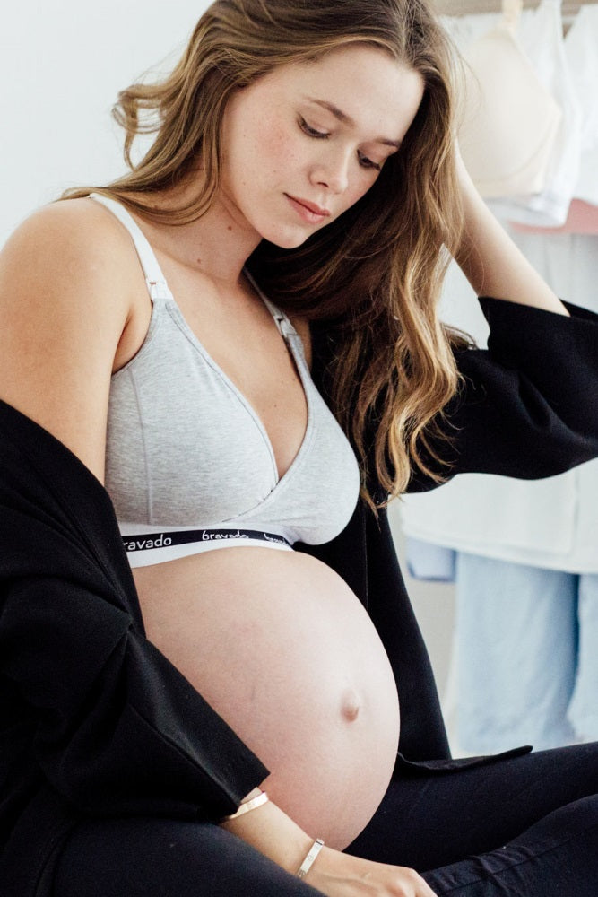A colorblock maternity/nursing bra. Wire free. Adjustable straps.