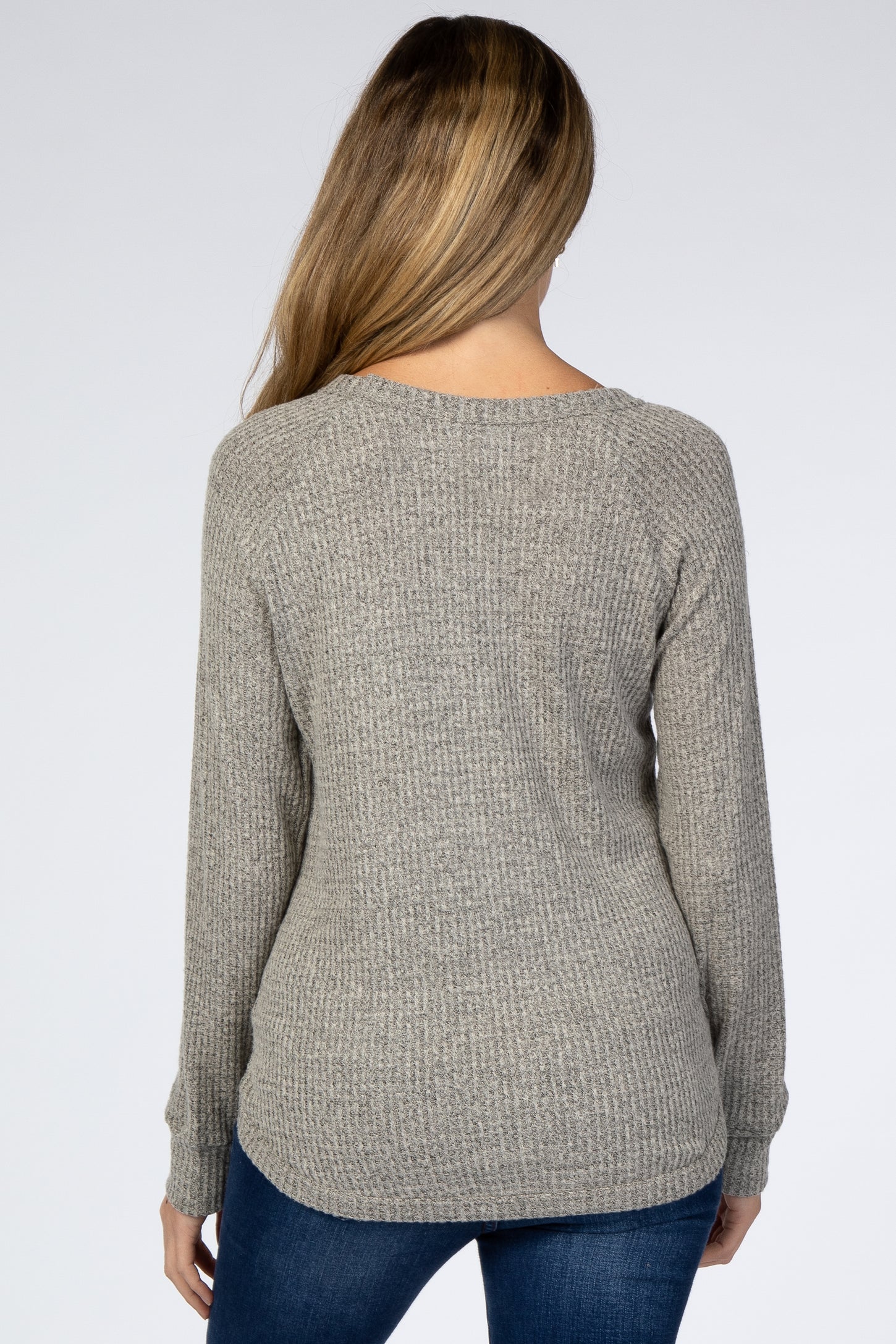 An ultra soft brushed waffle knit maternity top featuring a rounded neckline, long sleeves and a rounded hem.