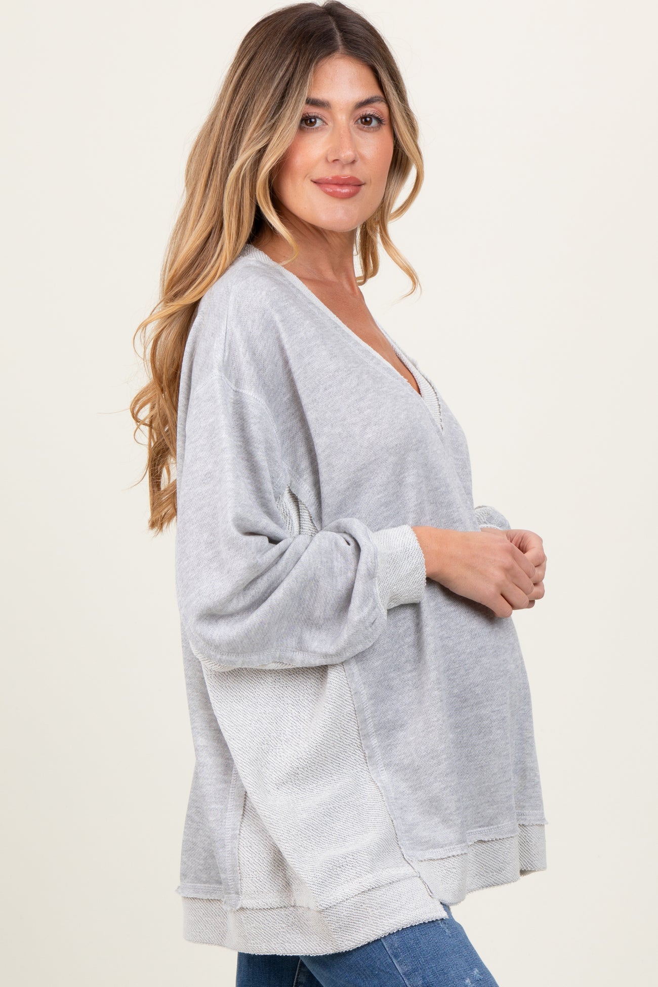 Heather Grey Contrast French Terry Maternity Long Sleeve Top