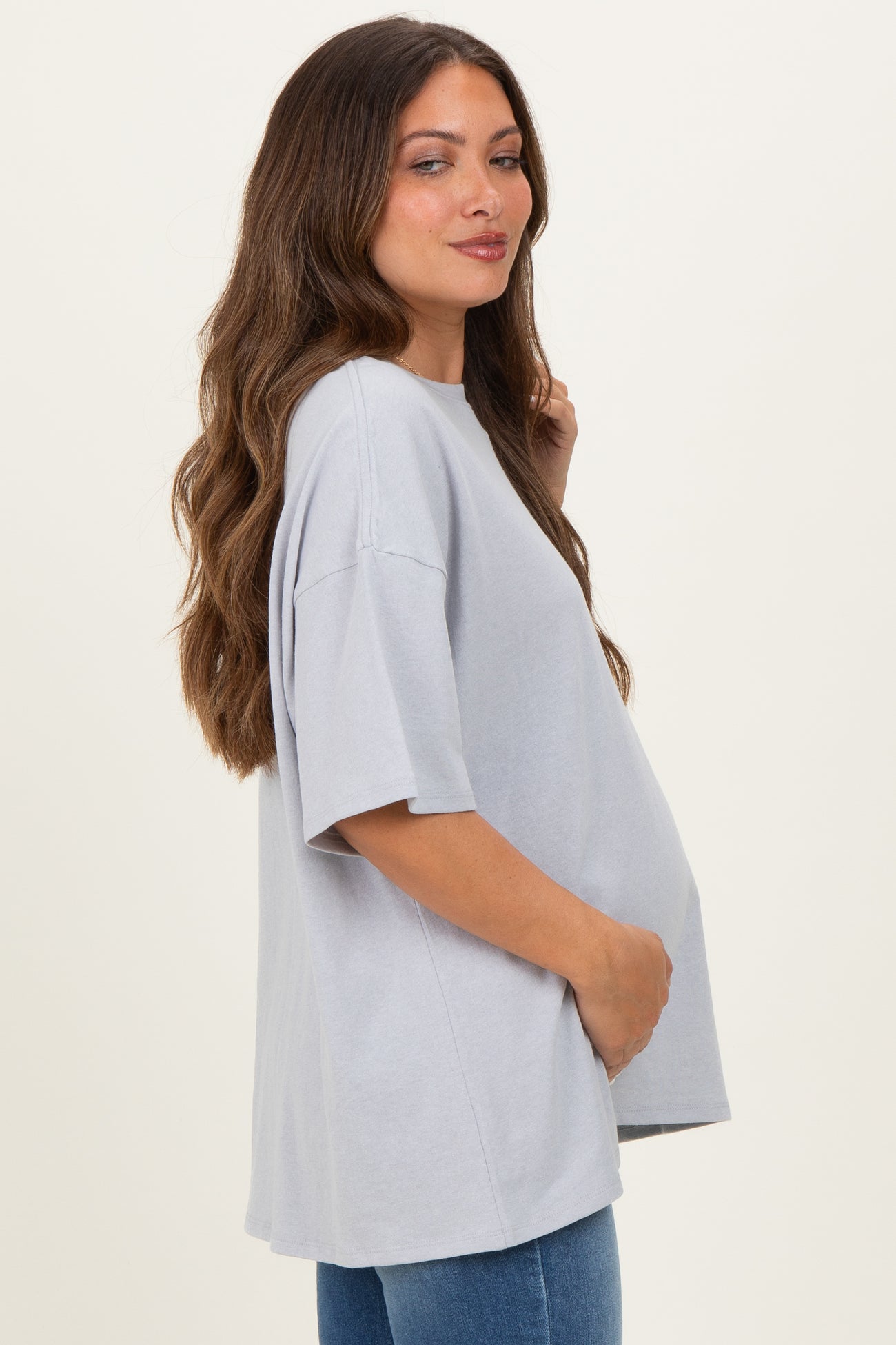Heather Grey Cotton Oversized Maternity Tee