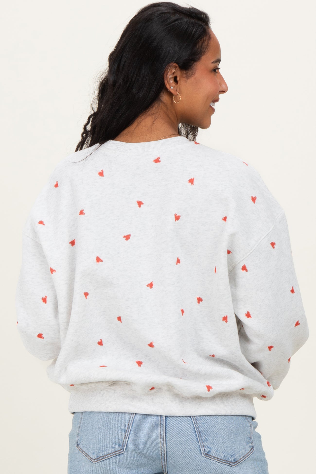 Heather Grey Crew Neck Heart Print Maternity Sweatshirt
