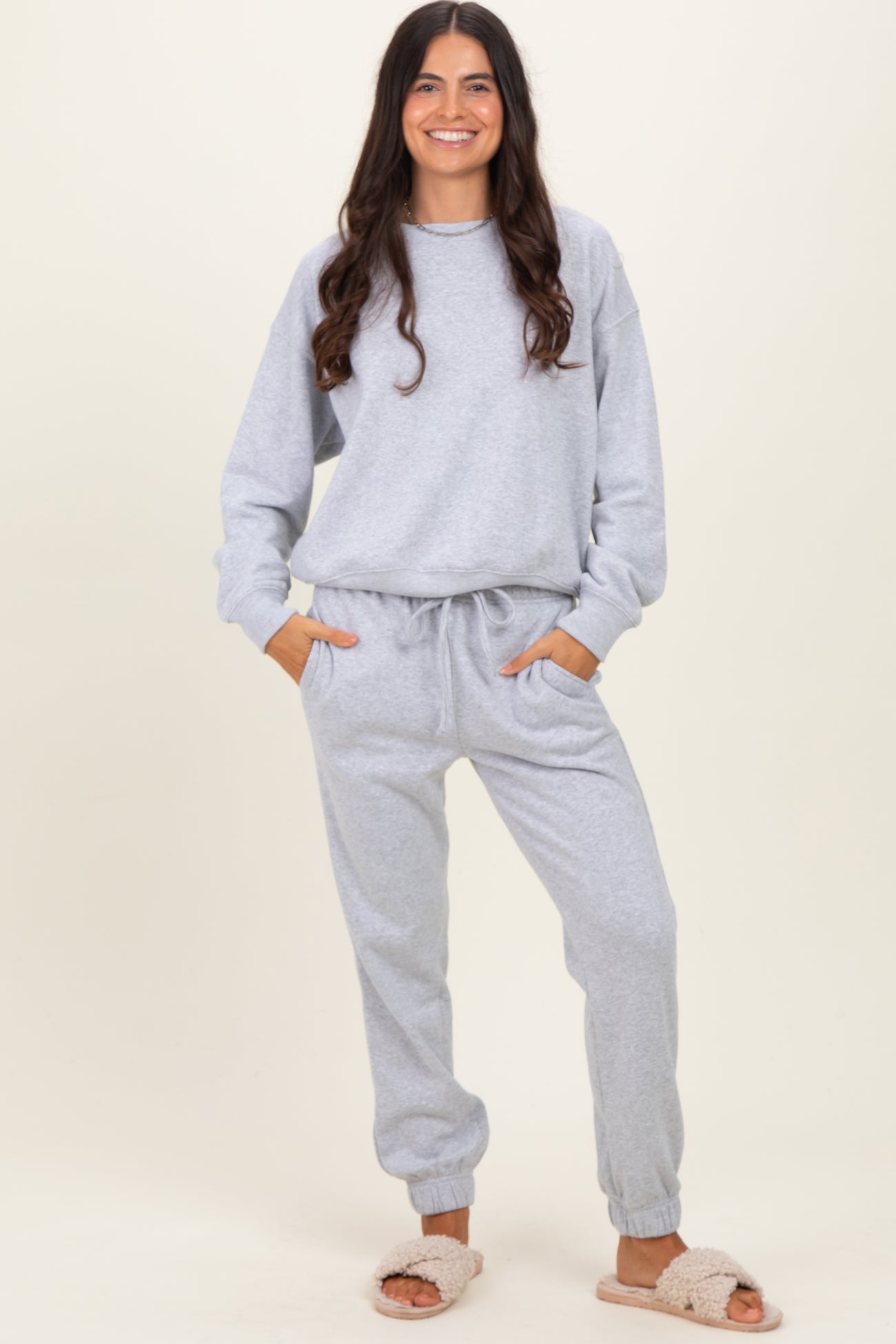 Heather Grey Fleece Long Sleeve Pullover & Jogger Set