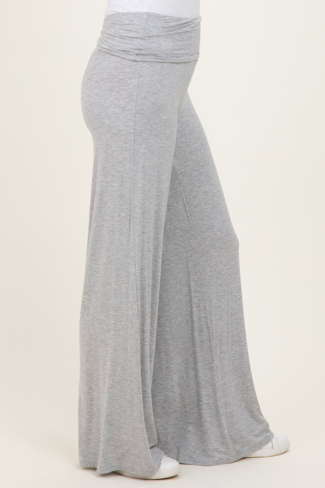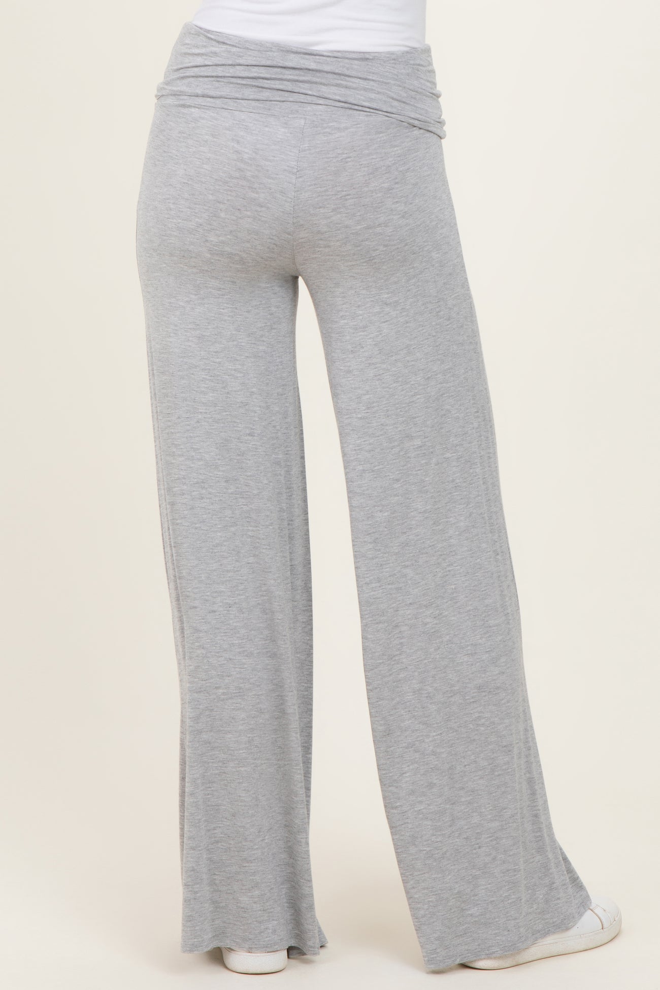 Heather Grey Fold Over Waist Wide Leg Lounge Pants