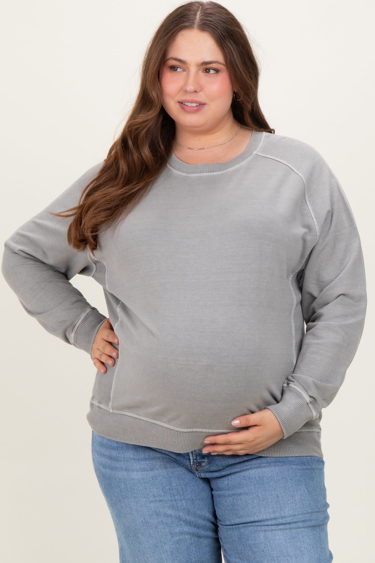 Heather Grey French Terry Vintage Wash Maternity Plus Pullover