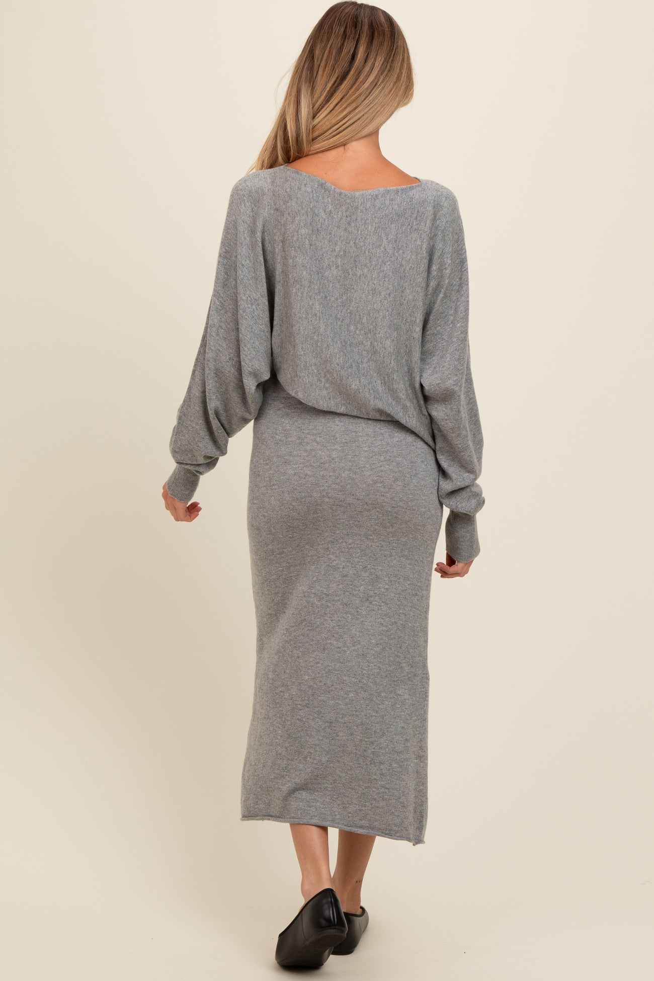 Heather Grey Knit Asymmetrical Top Midi Skirt Maternity Set