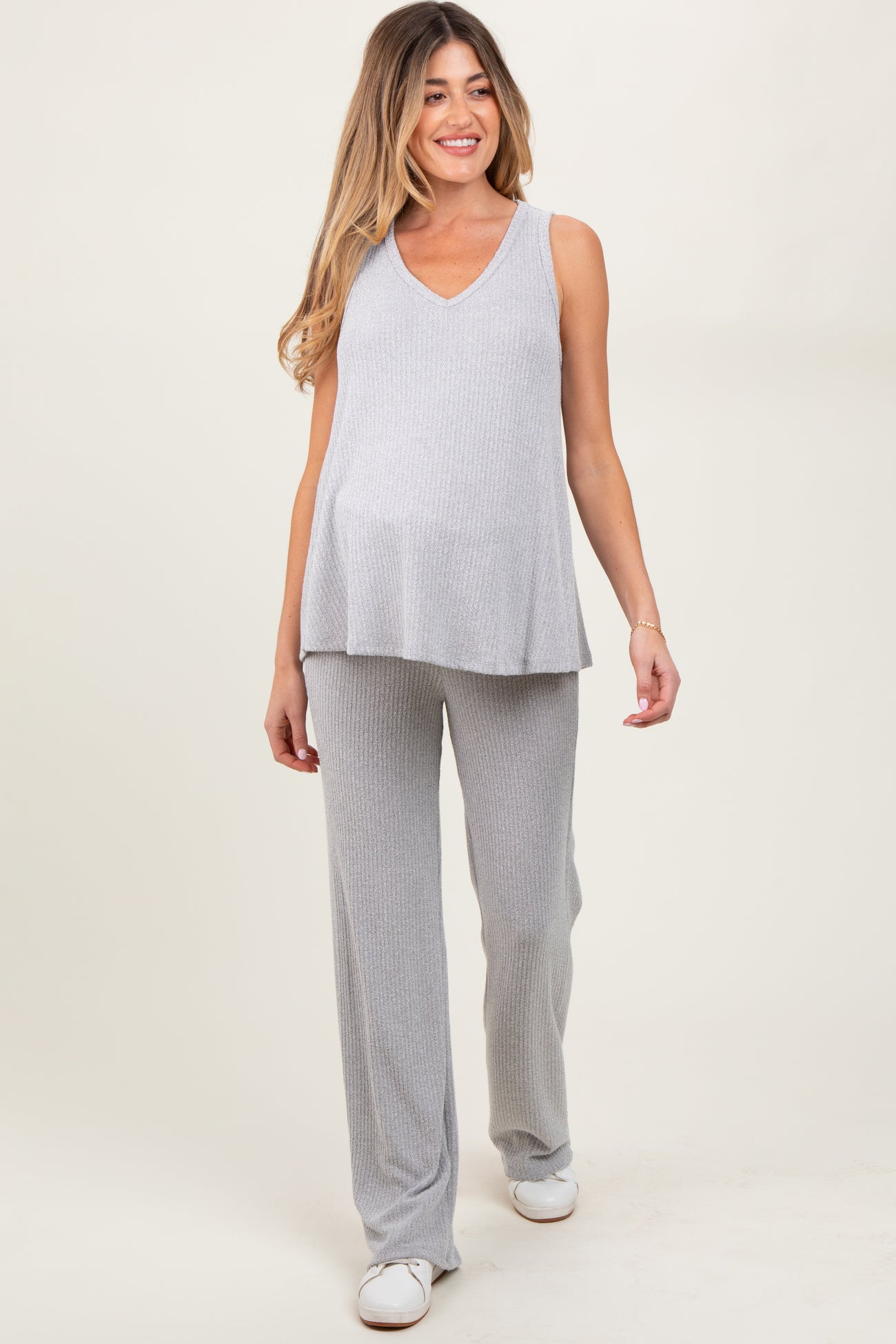 Heather Grey Rib Knit Tank and Pant Maternity Set