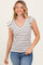 Ivory/Black Stripe Ribbed Ruffle Sleeve V-Neck Top