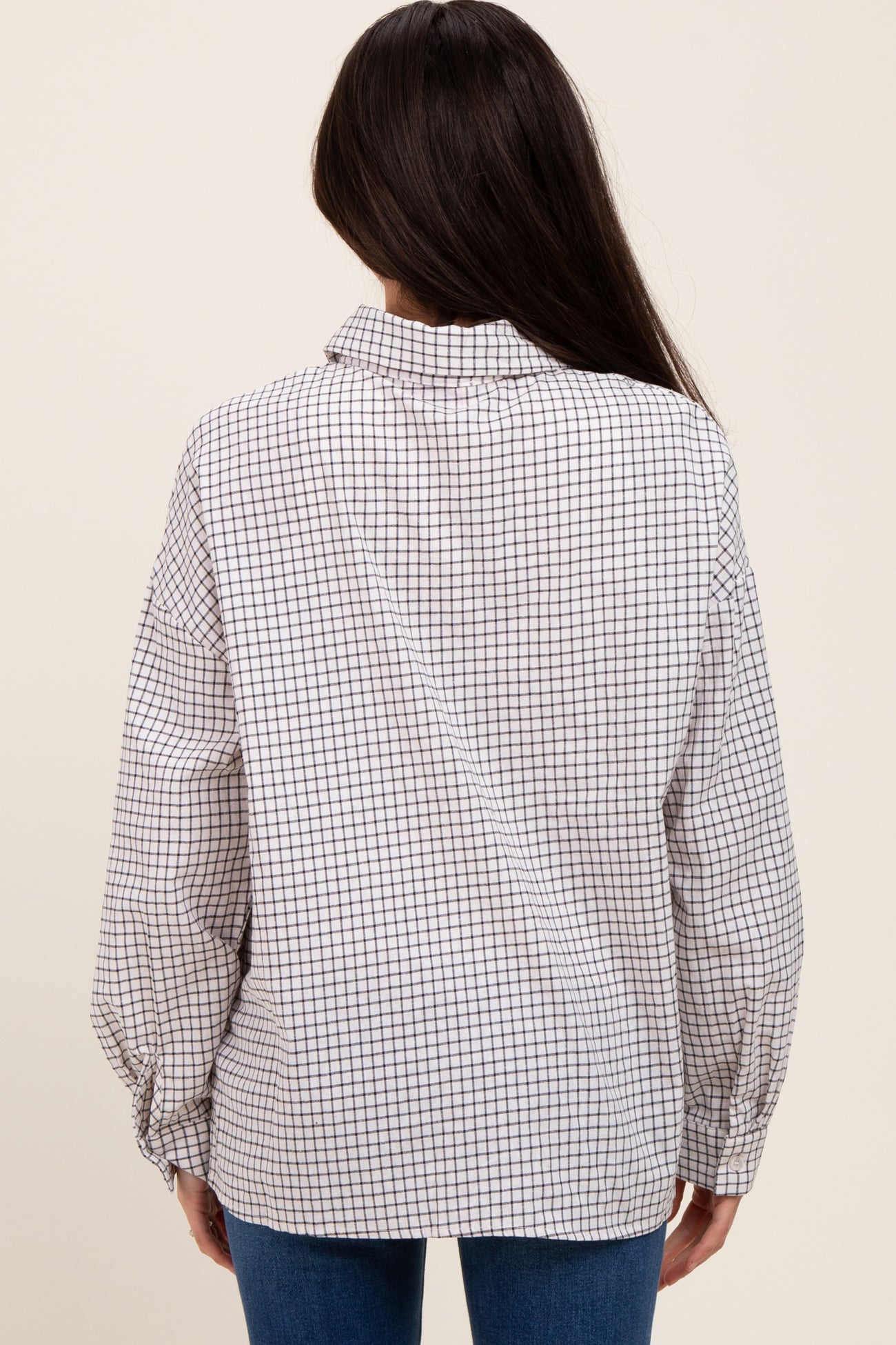 Ivory Checker Plaid Button Down Maternity Shirt