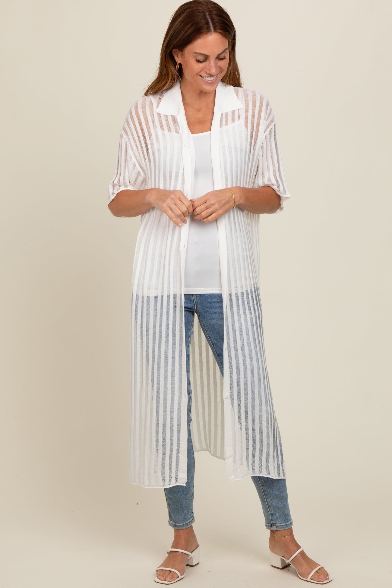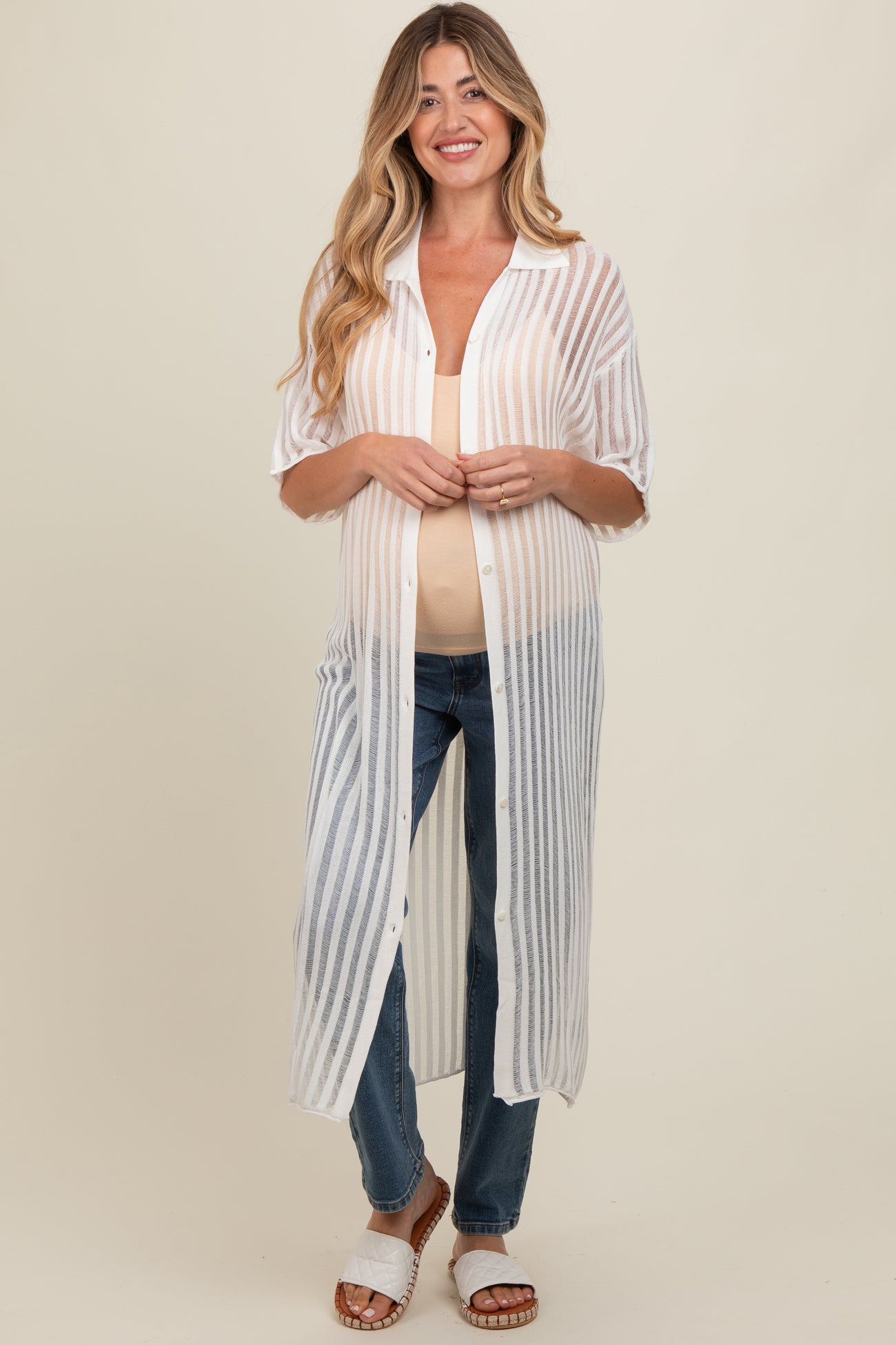 Ivory Distressed Collared Maternity Cover-Up