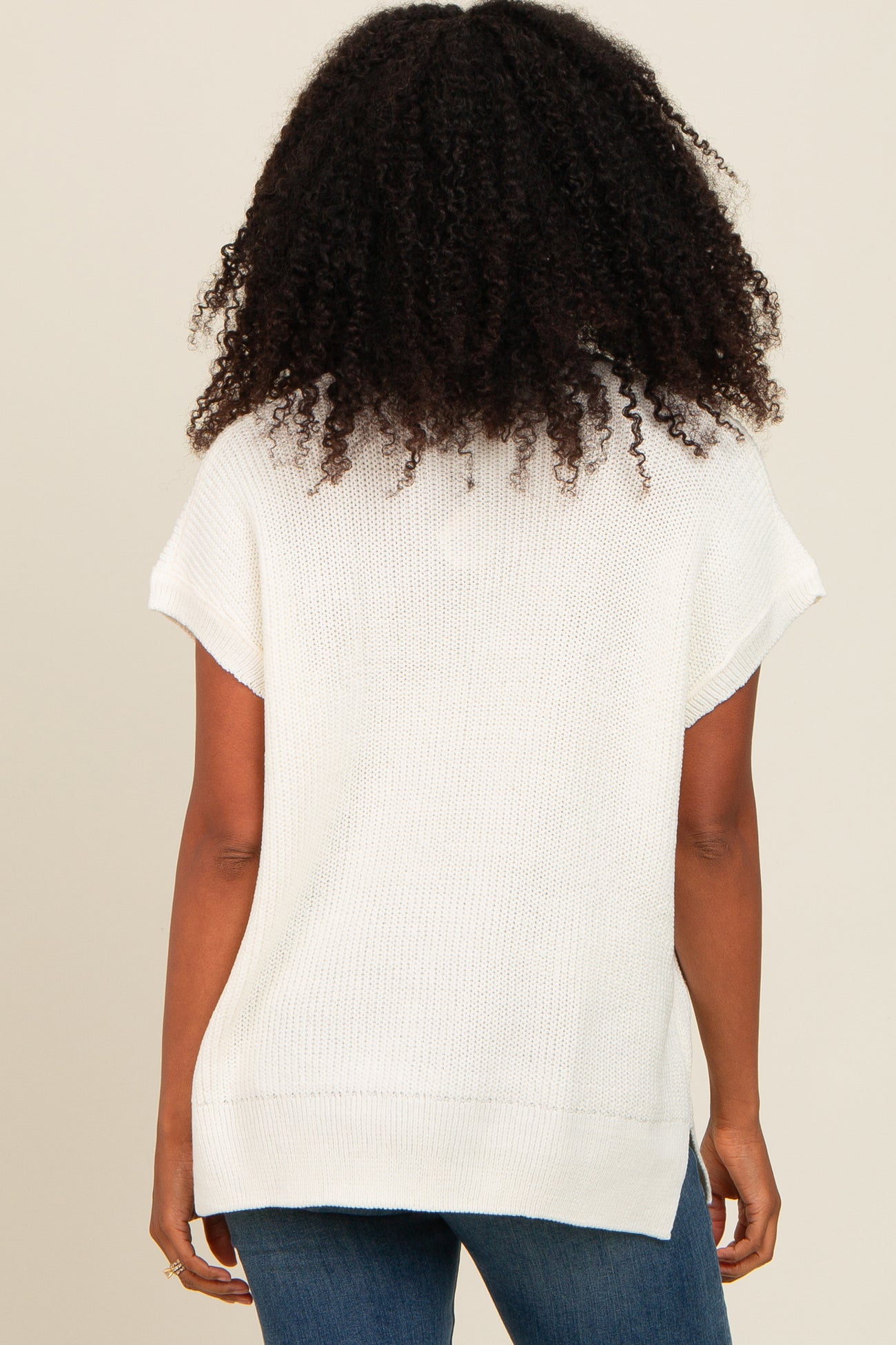 Ivory Dolman Short Sleeve Side Slit Sweater Top