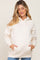A solid hue maternity sweater with soft fleece lining, a drawstring hoodie, long raglan sleeves, and a front pocket.