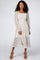 Ivory Floral Smocked Front Ruffle Hem Midi Dress