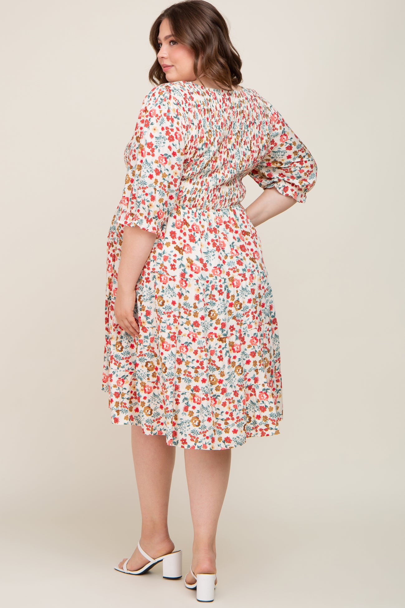 Ivory Floral Smocked Tiered Ruffle Maternity Plus Dress
