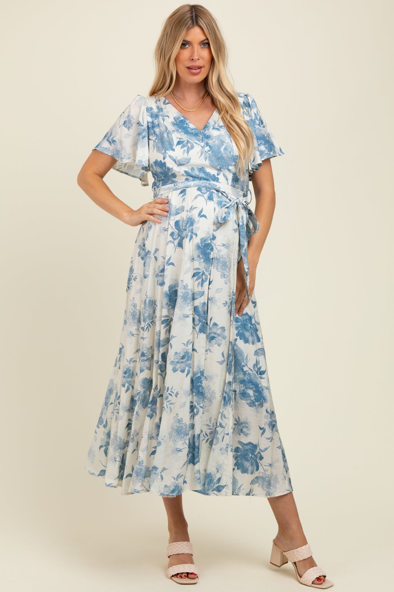 Ivory Multi Floral Flutter Sleeve Maternity Maxi Dress