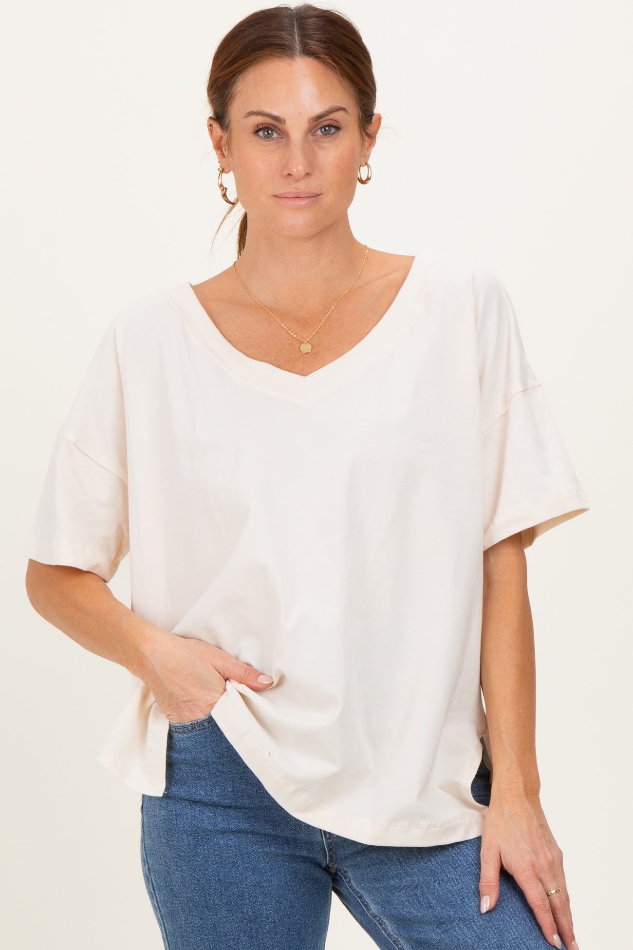 Elevate your casual wardrobe with this Oversized Reversible V-Neck Tee, designed for comfort and versatility. Crafted from a soft, breathable fabric, this tee features a relaxed silhouette that drapes effortlessly for a laid-back yet chic look. The V-neckline adds a flattering touch, while the oversized fit ensures easy movement and all-day comfort. Unique reversible design allows you to switch up your style effortlessly, making it a perfect staple for any occasion. Pair it with your favorite jeans or leggings for an easy, stylish outfit that works from day to night. Embrace comfort without compromising on style.