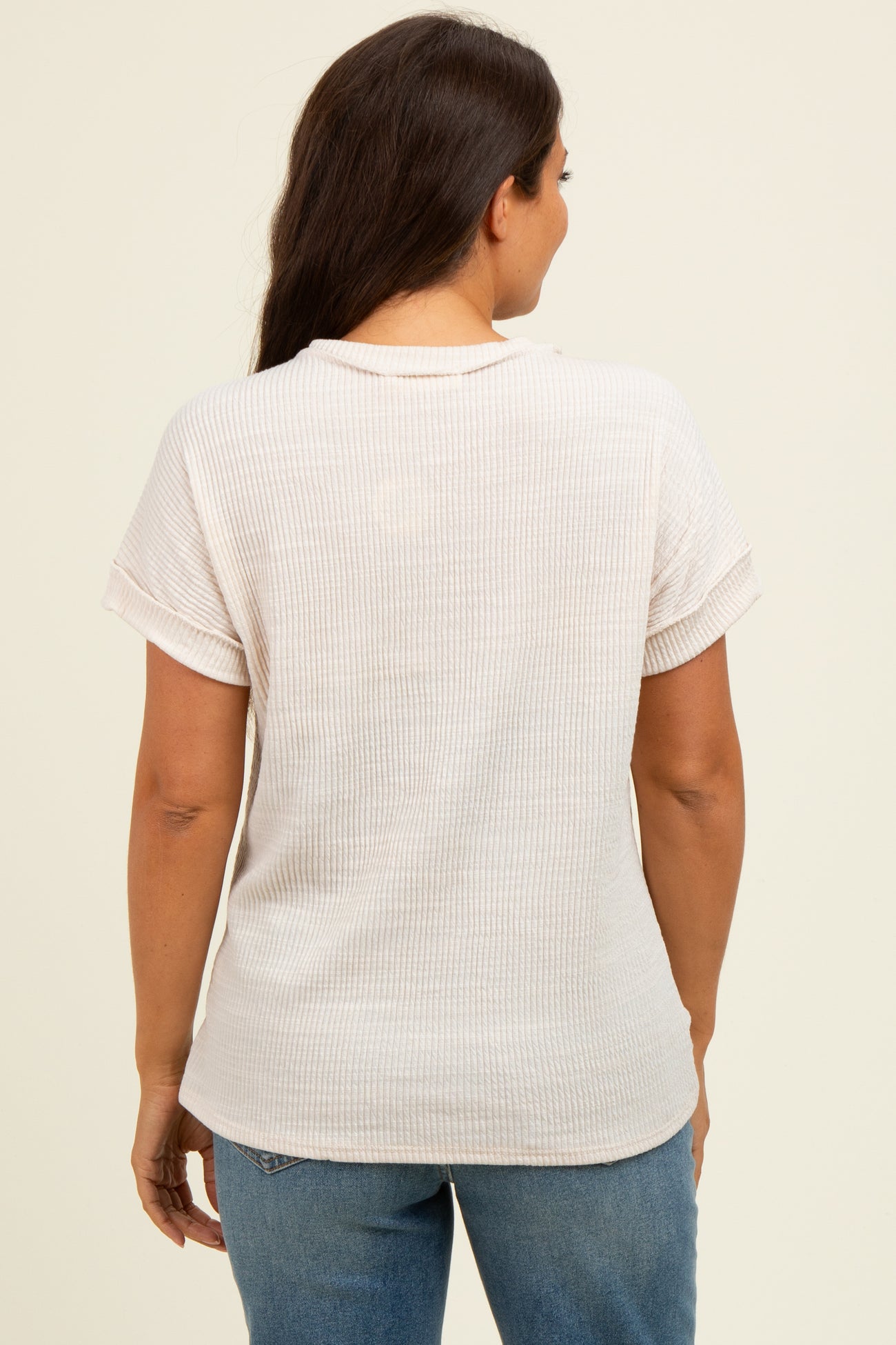 Stay comfortable and stylish with our Ivory Ribbed Exposed Seam Short Sleeve Maternity Top. Crafted with soft, breathable ribbed fabric, this top gently hugs your growing belly while offering a relaxed fit. The exposed seam detailing and rolled short sleeves add a trendy touch to a classic design, perfect for everyday wear. Its versatile ivory color pairs effortlessly with jeans or leggings, making it an essential piece for your maternity wardrobe. Designed to support you through all stages of pregnancy with comfort and ease. Machine washable for easy care. Embrace your glow in comfort and style!