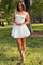 Ivory Satin Corset Shape Lace Trim Flare Mini Dress