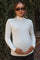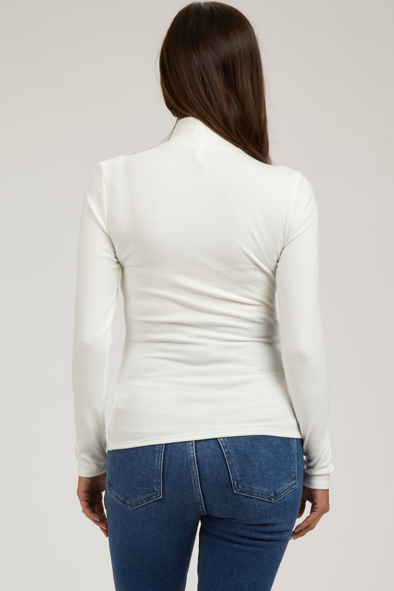A solid soft maternity top featuring a turtle neckline and long sleeves.