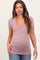 Lavender Cream Stripe Short Sleeve Round Neck Maternity Top