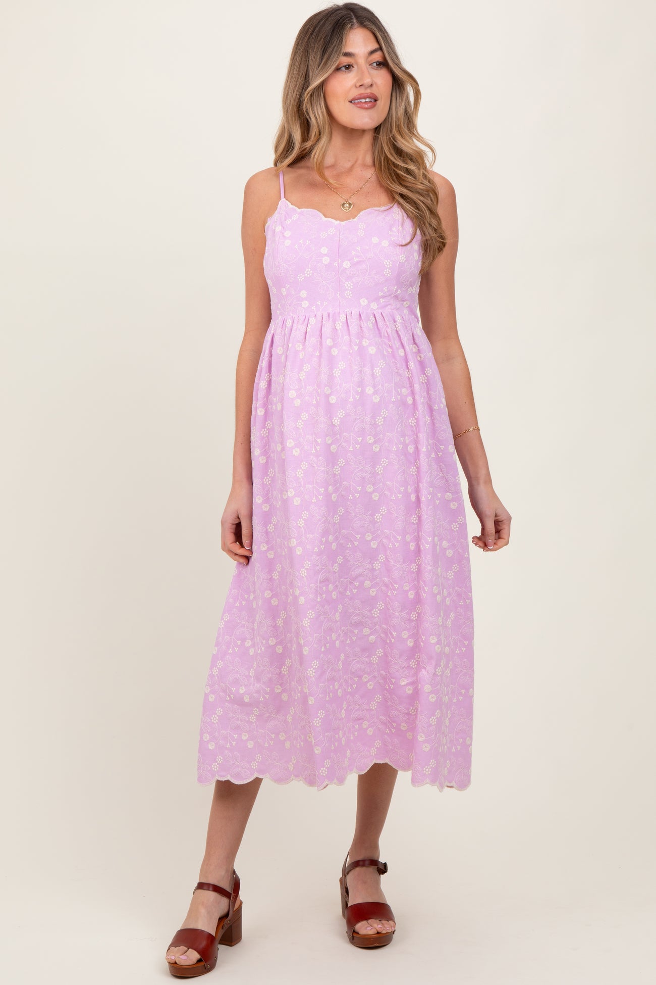 Lavender Floral Embroidered Scallop Detail Maternity Midi Dress