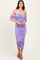 Lavender Off Shoulder Draped Ruched Midi Dress
