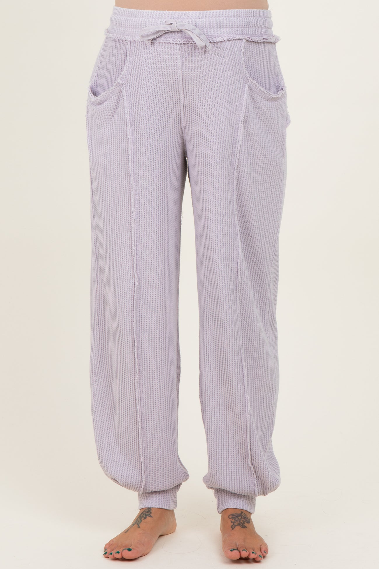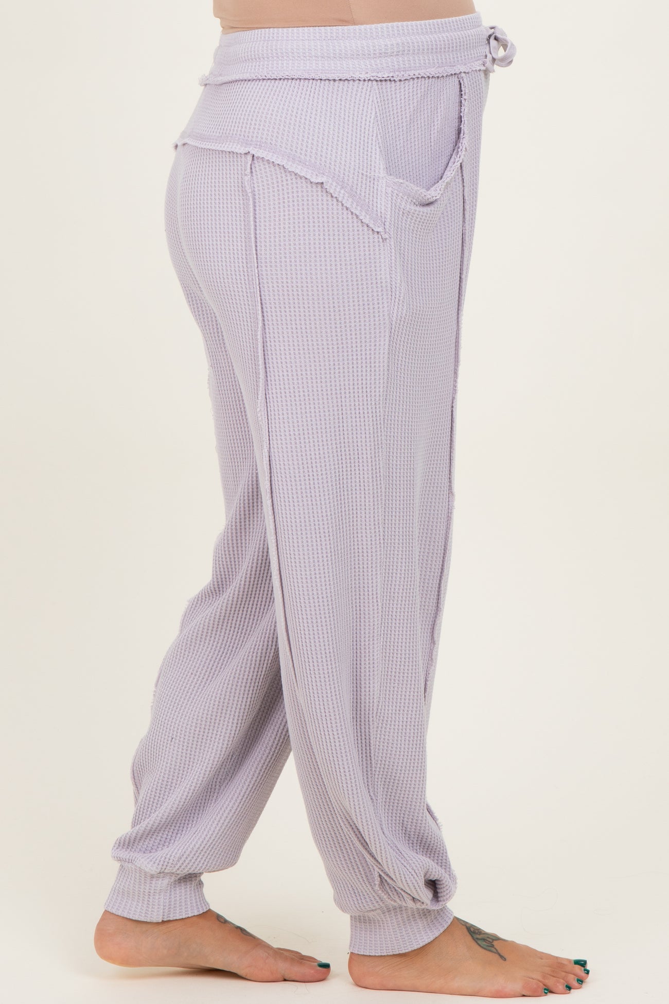 Lavender Raw Seam Waffle Knit Maternity Joggers