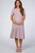 A solid ribbed short sleeve maternity dress with scoop neckline and tiered body.
