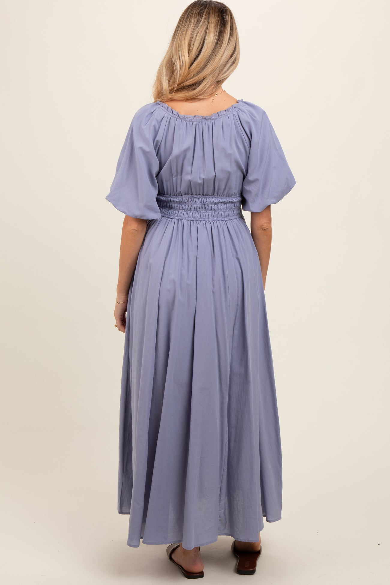 Lavender Smocked Puff Sleeve Maternity Maxi Dress