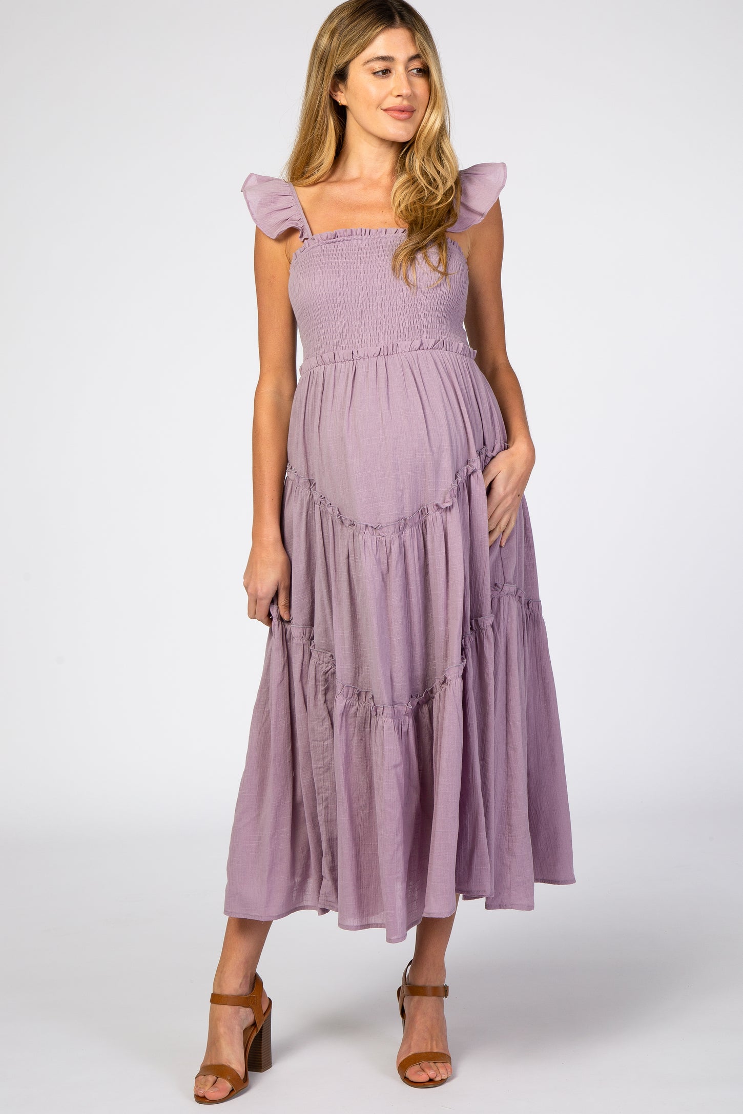 Lavender Smocked Ruffle Accent Maternity Dress