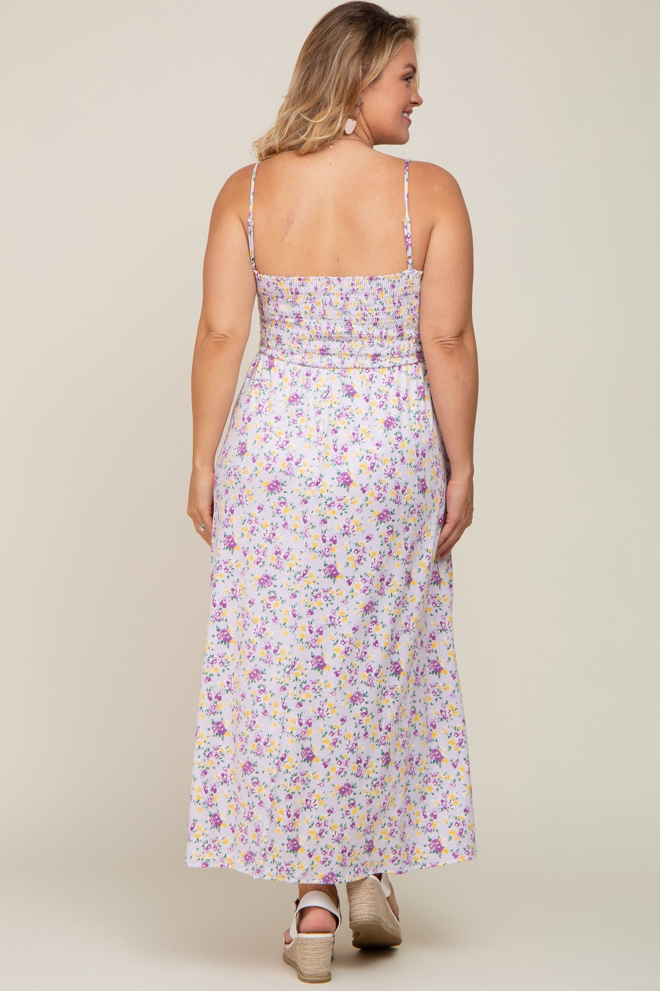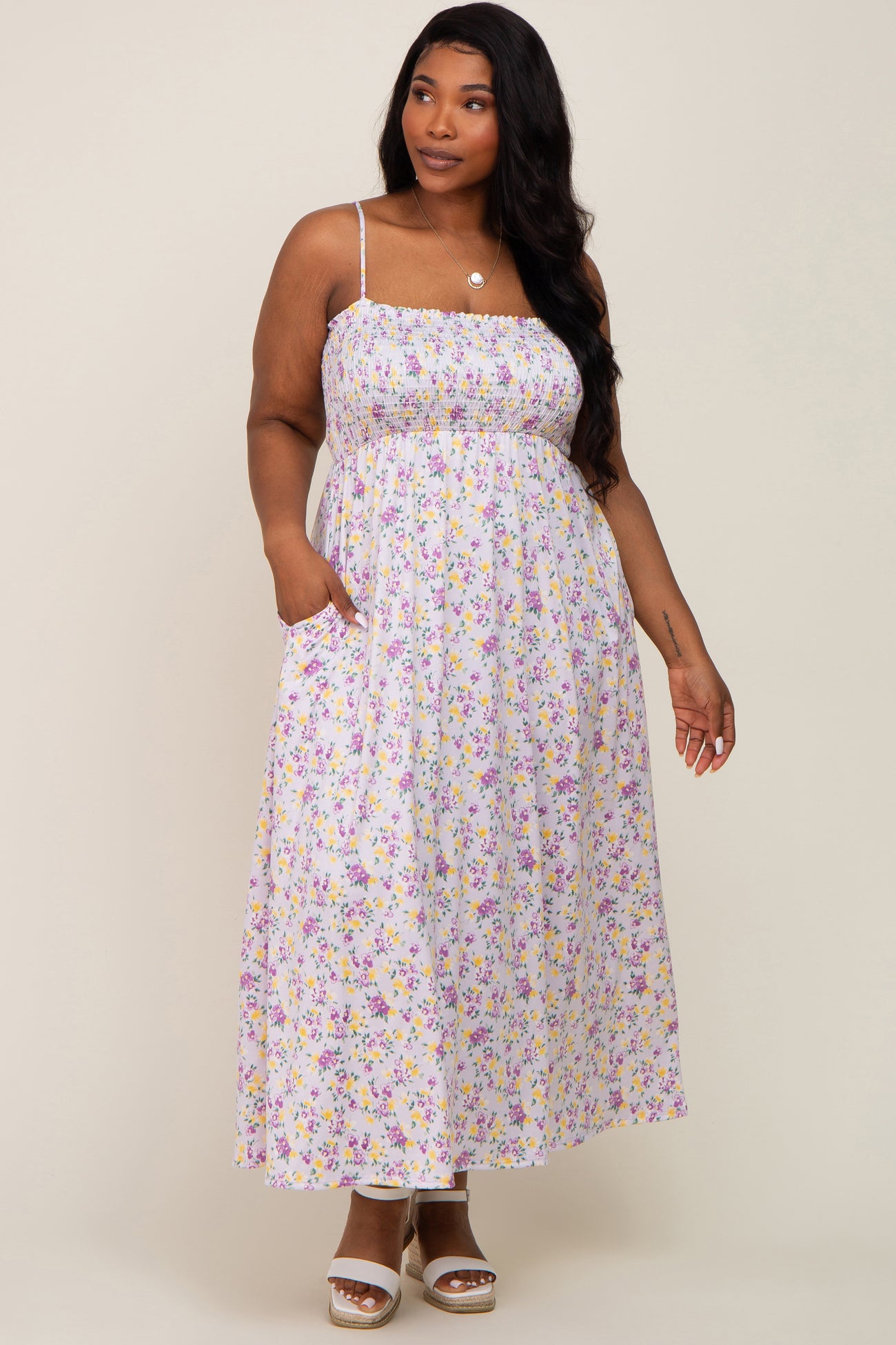 Lavender Square Neck Smocked Plus Maternity Midi Dress