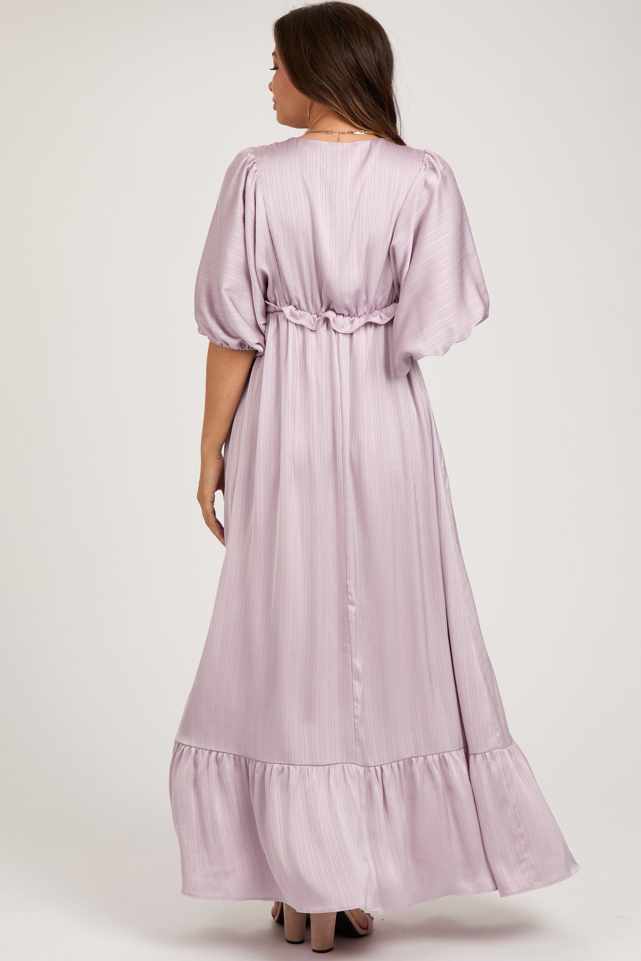 Lavender Striped Ruffle Accent Maternity Maxi Dress