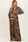 Leopard Pleated V Neck Satin Maternity Maxi Dress