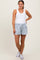 Light Blue Chambray Drawstring Front Pocket Maternity Shorts