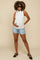 Light Blue Distressed Fringe Hem Maternity Shorts