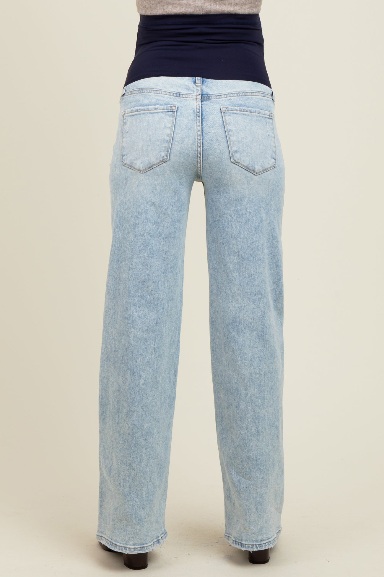 Light Blue Distressed Open Knee Wide Leg Maternity Jeans