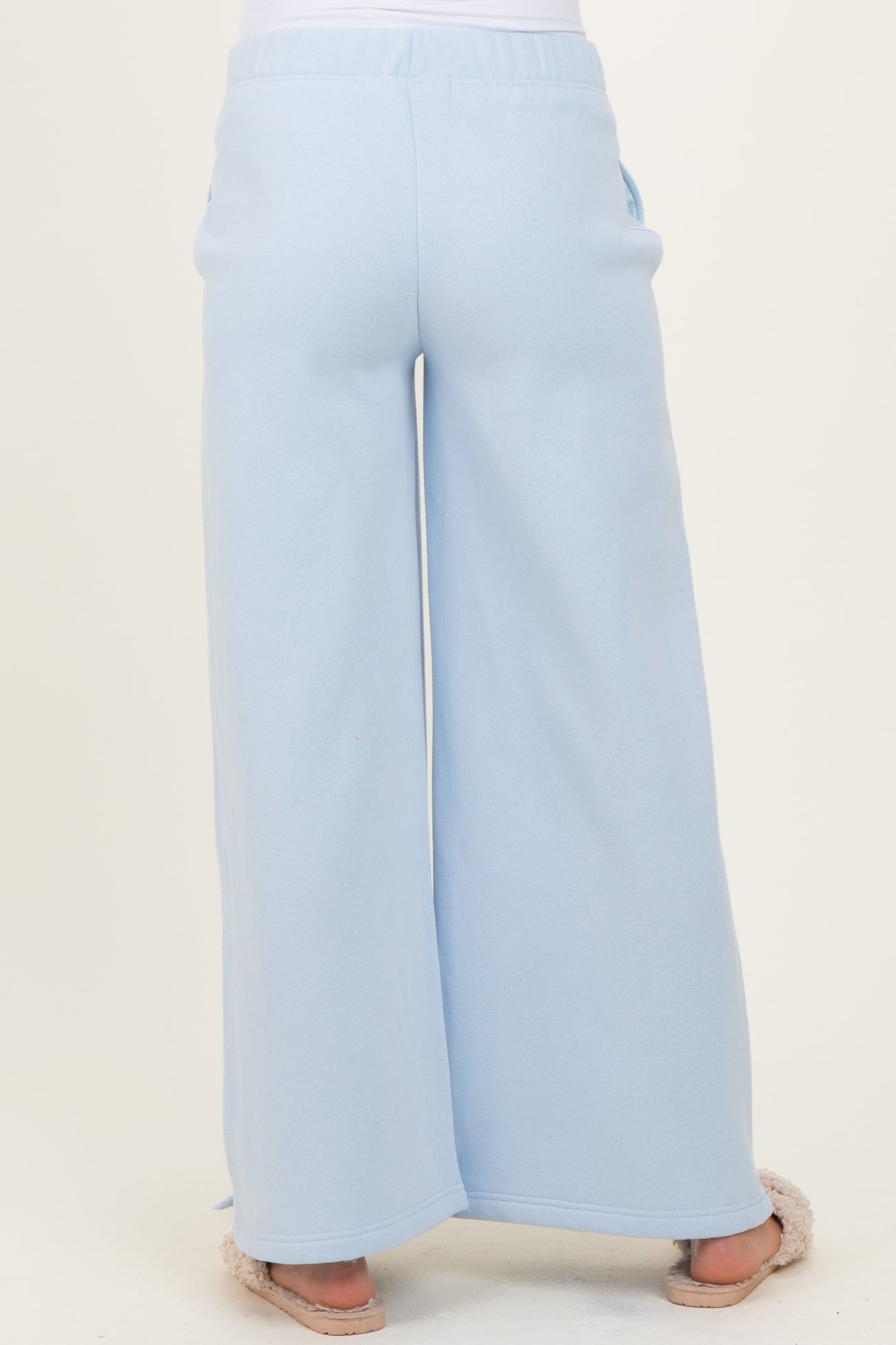 Light Blue Fleece Wide Leg Maternity Sweatpants