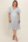 A floral print plus maternity midi dress featuring short puff sleeves and a v-neckline.