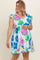 A floral print maternity plus dress with a v-neckline, ruffle accents and button and hook eye closure in back. Dress is lined.