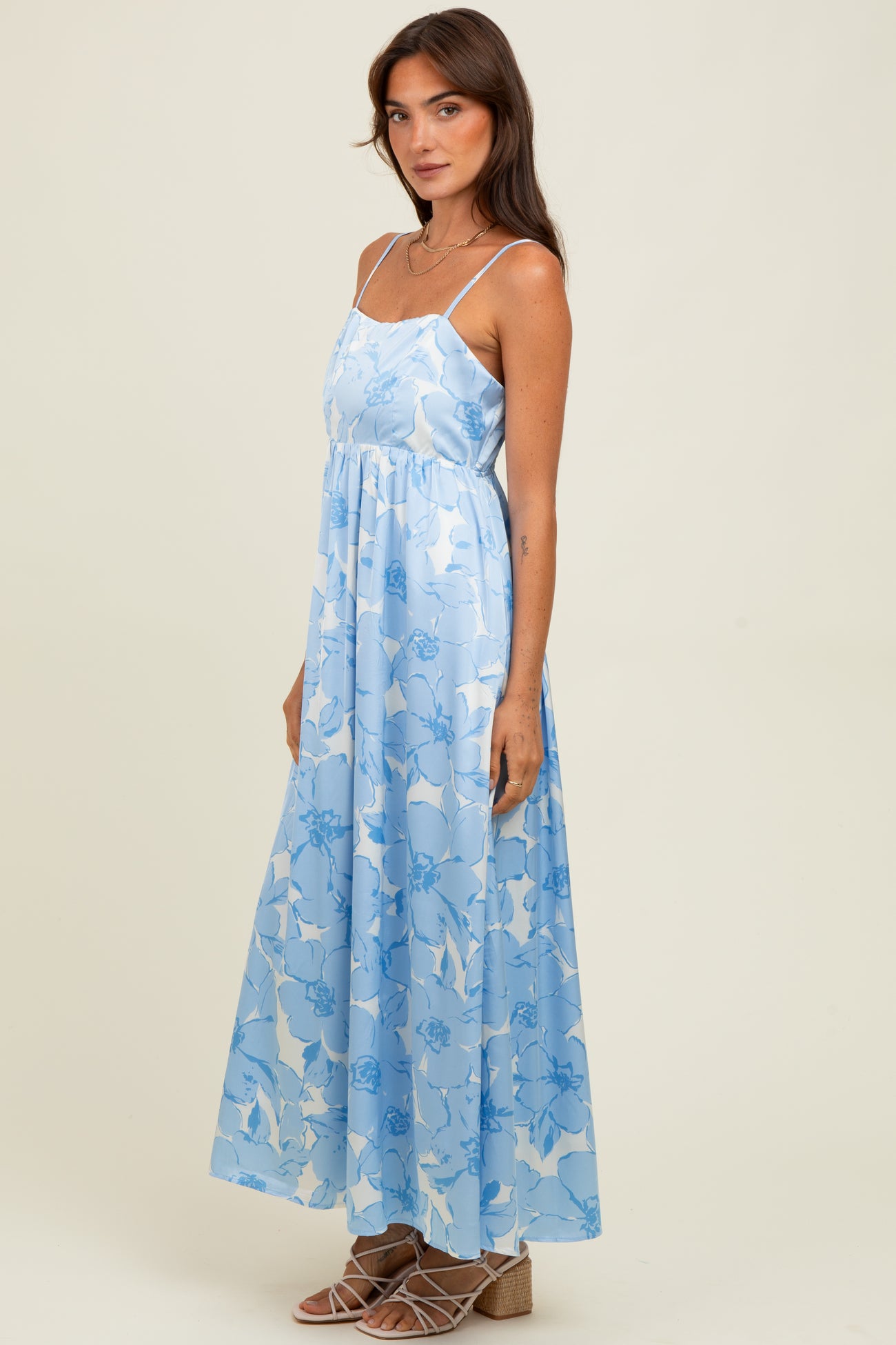 Light Blue Floral Sleeveless Maxi Dress