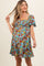 A floral print maternity dress featuring a square neckline, flutter short sleeves, a smocked bodice and a back cutout with an adjustable tie.