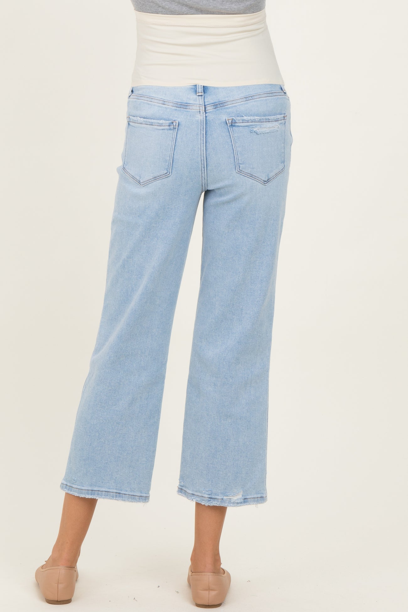 Light Blue High Rise Crop Slim Wide Maternity Jeans