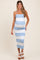 Light Blue Ivory Striped Back Lace Up Bodycon Maternity Maxi Dress