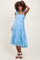 Light Blue Printed Tie Strap Tiered Maternity Midi Dress