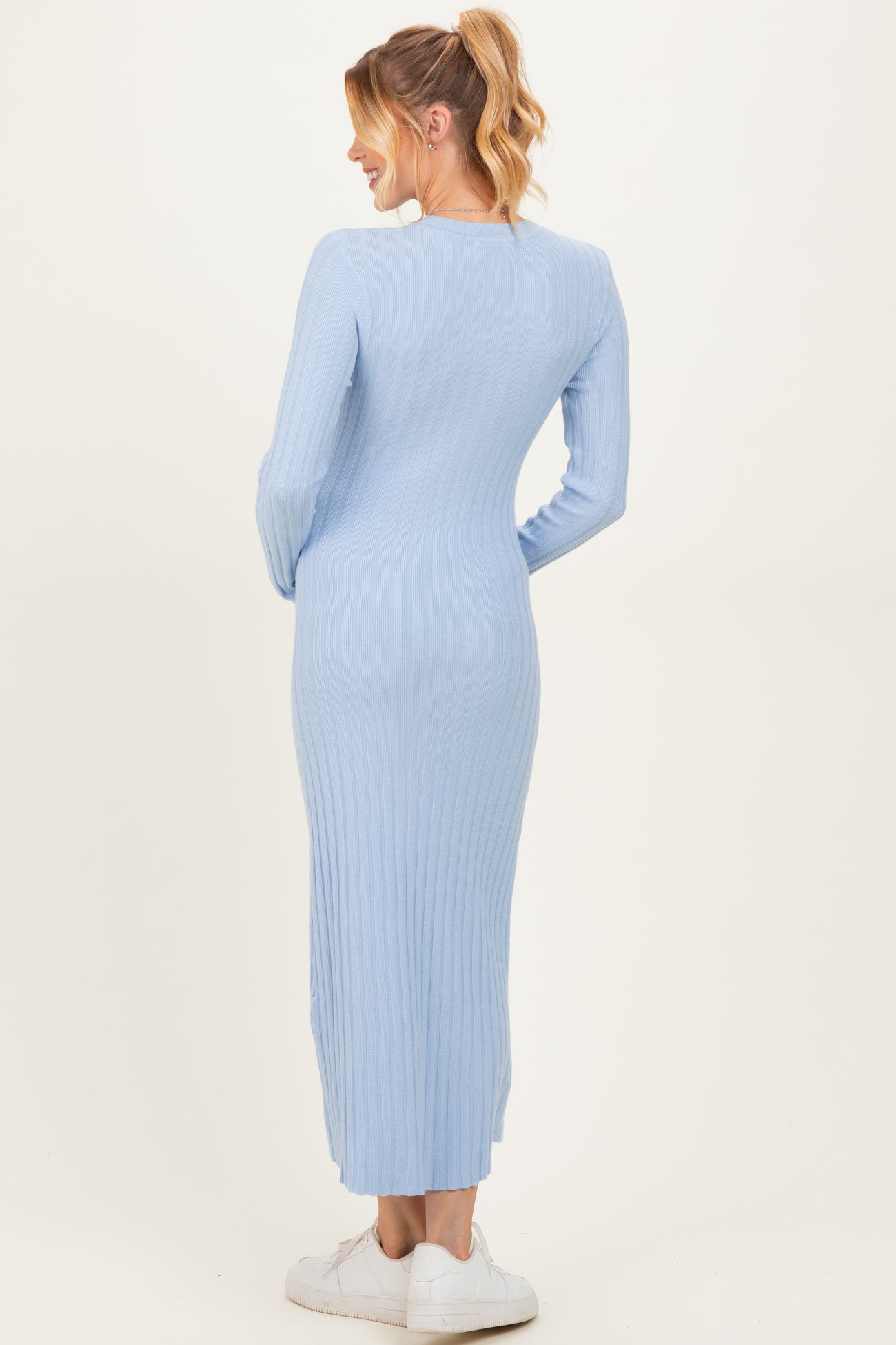 Light Blue Ribbed Knit Fitted Maternity Midi Sweater Dress